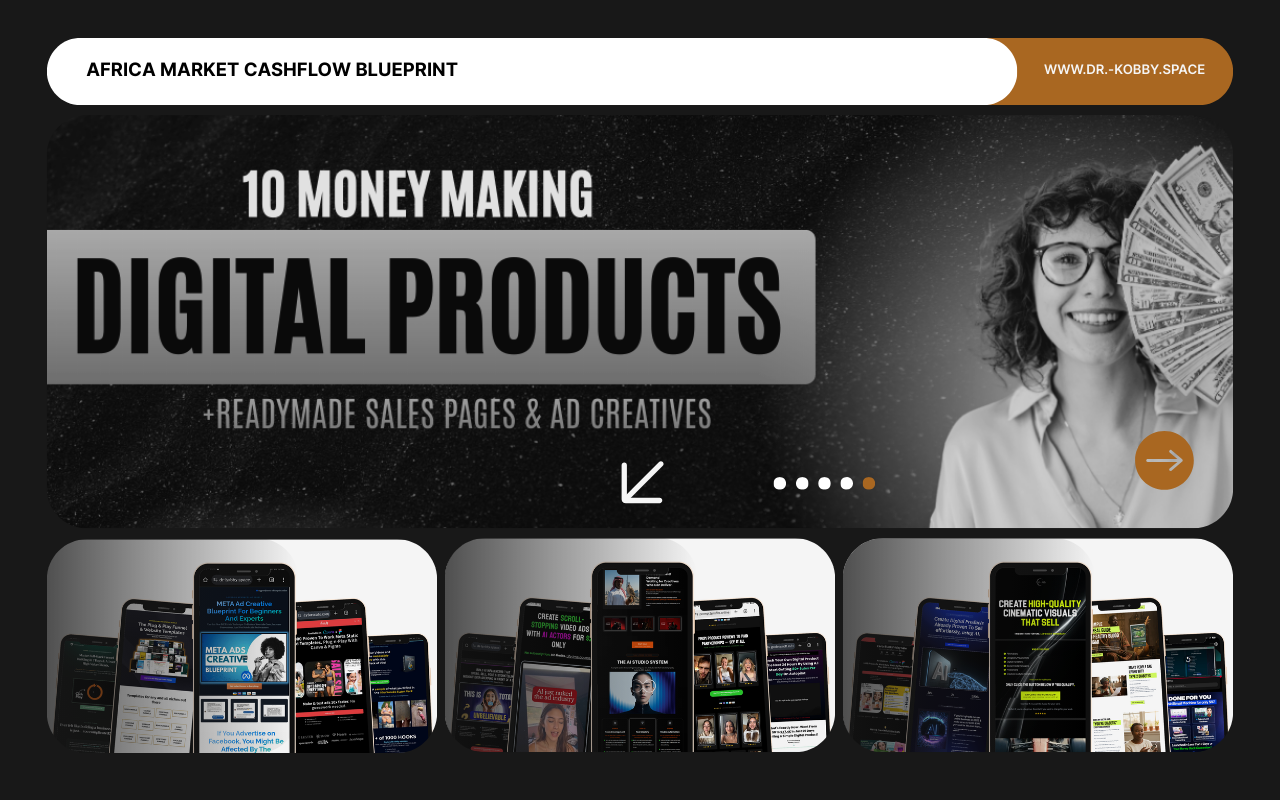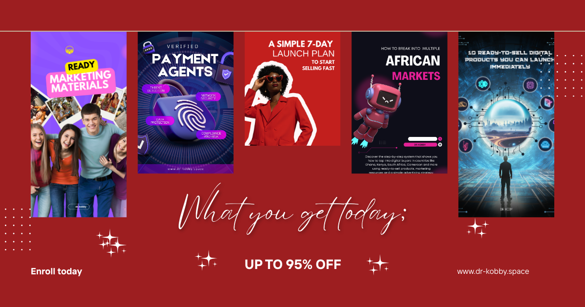 A private training where you’ll learn how to sell across Africa, receive payments through verified local agents, and launch fast using 10 ready-to-sell digital products with complete marketing assets.